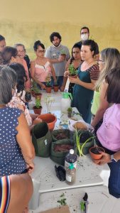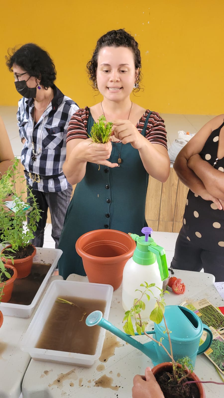 Em ação do Programa Mais Vida o MorenoPrev realizou, na manhã do dia 31/01/2022, uma oficina para os aposentados e pensionistas envolvendo o meio ambiente, no Quintal. Foi abordado o tema: Horta Caseira – Conceitos relacionados à compostagem e jardinagem orgânica. Foi convidada Lidiane Almeida, da empresa Cria Verde, que palestrou sobre como os aposentados e pensionistas podem realizar o plantio de plantas decorativas e para consumo alimentício, como menta, hortelã, tomilho e cebolinho. De brinde, os servidores levaram para casa uma muda de planta para iniciar o cultivo e colocar em prática o aprendizado na aula.