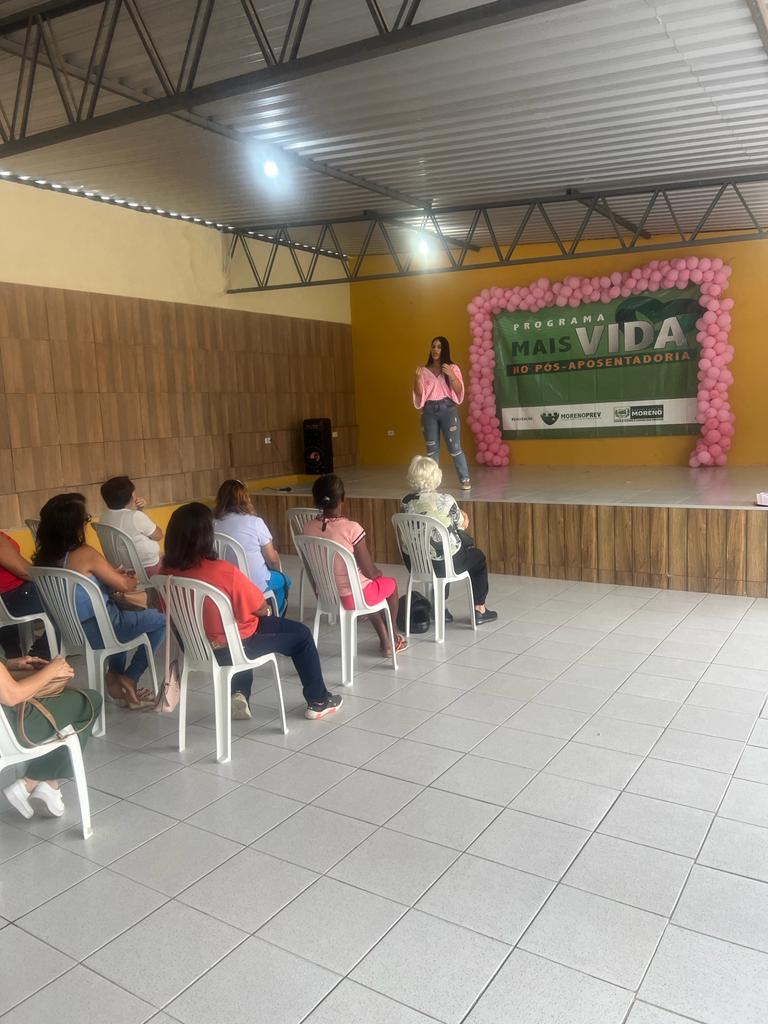 Na manhã do dia 20 de outubro, o MorenoPrev promoveu uma manhã de cuidados para as servidoras aposentadas. A ação vivenciou o Outubro Rosa e realizou atividades de conscientização sobre a importância da prevenção do câncer de mama, como palestras e oficinas. As servidoras participaram de uma aula de alongamento, com o educador físico Elyton Neves, e de relaxamento, com a fisioterapeuta Rafaela Andressa. Elas também puderam fazer limpeza de pele, maquiagem e avaliação bucal. As equipes do CTA e do PNI também estiveram presentes no evento, fazendo testagem e aplicando vacinas. A enfermeira Roberta Thaís ensinou, de forma muito detalhada como fazer o autoexame, parte fundamental na descoberta precoce da doença e que pode salvar vidas.”